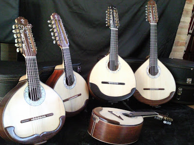 Instrumento con cuerpo de mandolina y diapasón de bandurria.